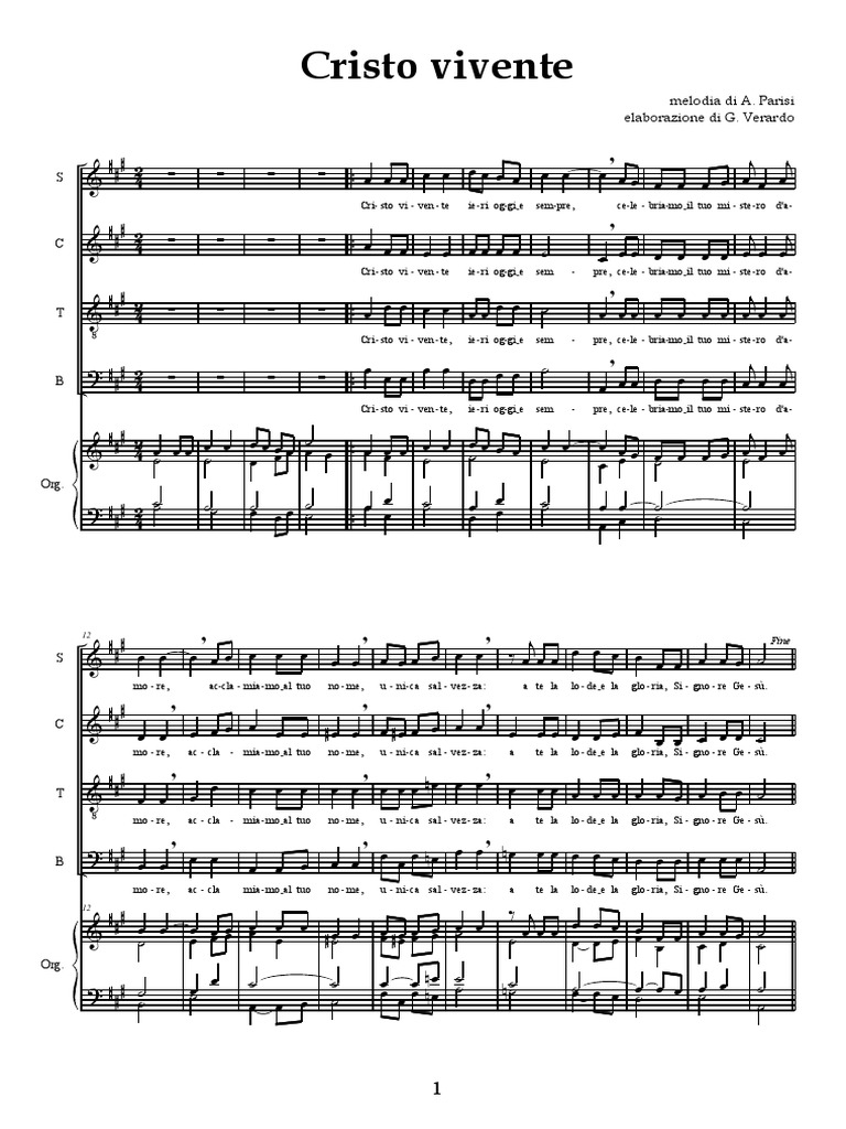 Cri - sto vi - ven - te ie - ri og-gie sem - pre, ce-le - bria-moil tuo mi - ste - ro d'a -