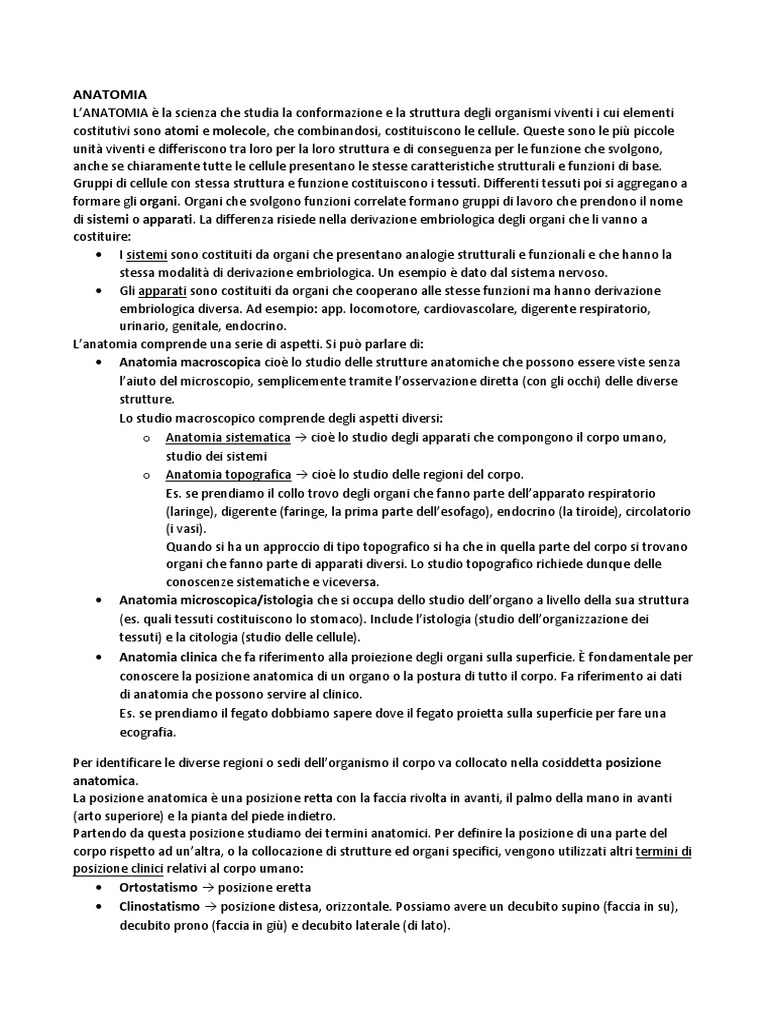 o Anatomia sistematica cioè lo studio degli apparati che compongono il corpo umano,