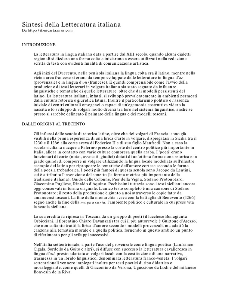 latino. La letteratura italiana, infatti, si sviluppò prevalentemente in ambienti permeati