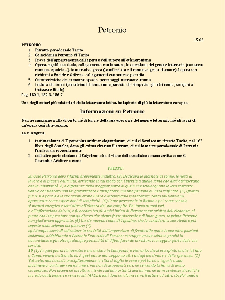 1. testimonianza di [Link] arbitrer elegantiarum, di cui ci fornisce un ritratto Tacito, nel 16°
