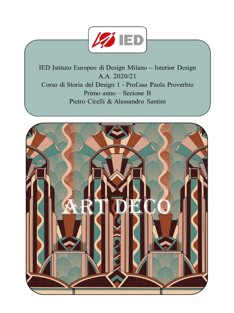 Europa. In particolare saranno analizzati i tratti distintivi dello stile Déco, poi verrà