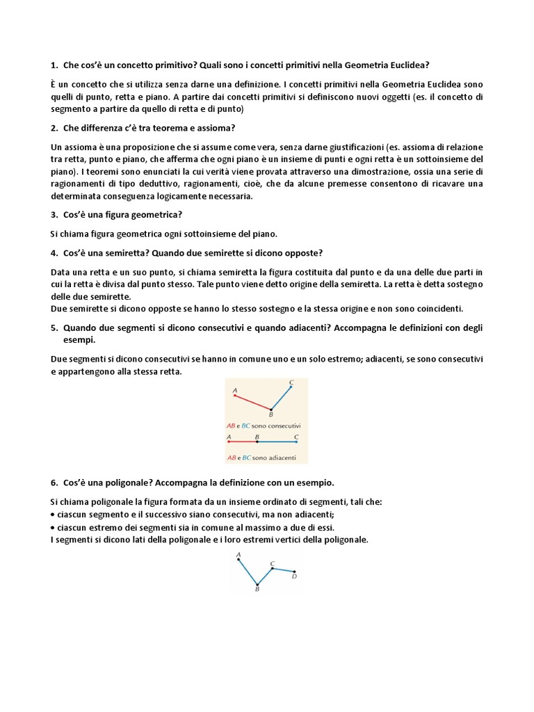 1. Che cos’è un concetto primitivo? Quali sono i concetti primitivi nella Geometria Euclidea?