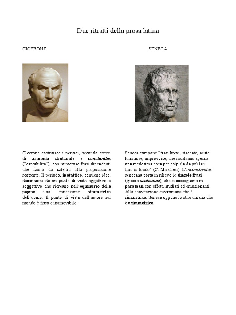 Cicerone costruisce i periodi, secondo criteri Seneca compone “frasi brevi, staccate, acute,
