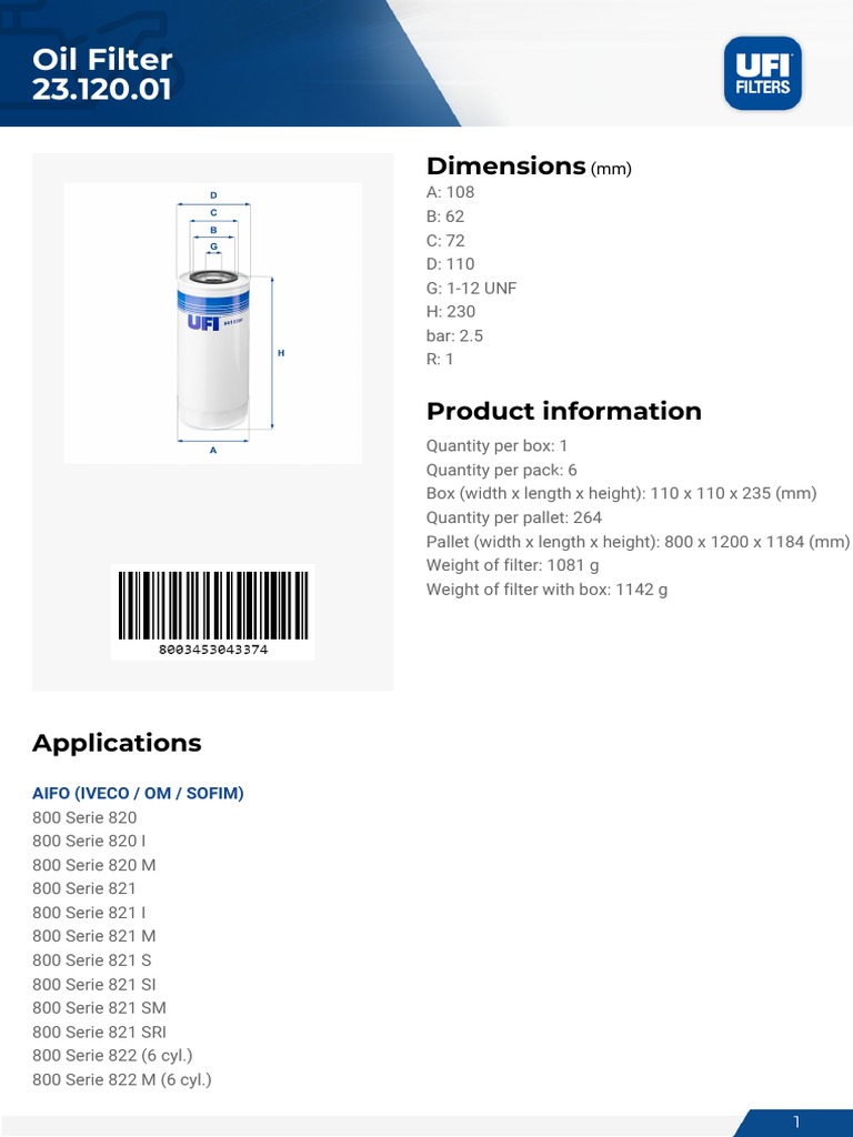 Pallet (width x length x height): 800 x 1200 x 1184 (mm)