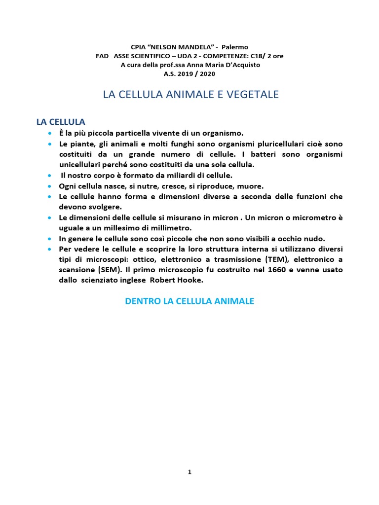 LA CELLULA ANIMALE E VEGETALE
