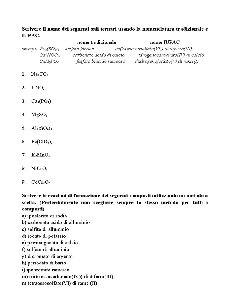 Scrivere il nome dei seguenti sali ternari usando la nomenclatura tradizionale e