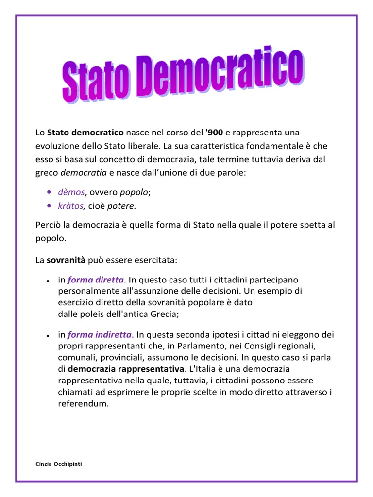 Lo Stato democratico nasce nel corso del '900 e rappresenta una