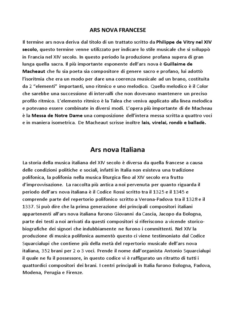 periodo dell’ars nova italiana è il Codice Rossi scritto tra il 1325 e il 1345 e
