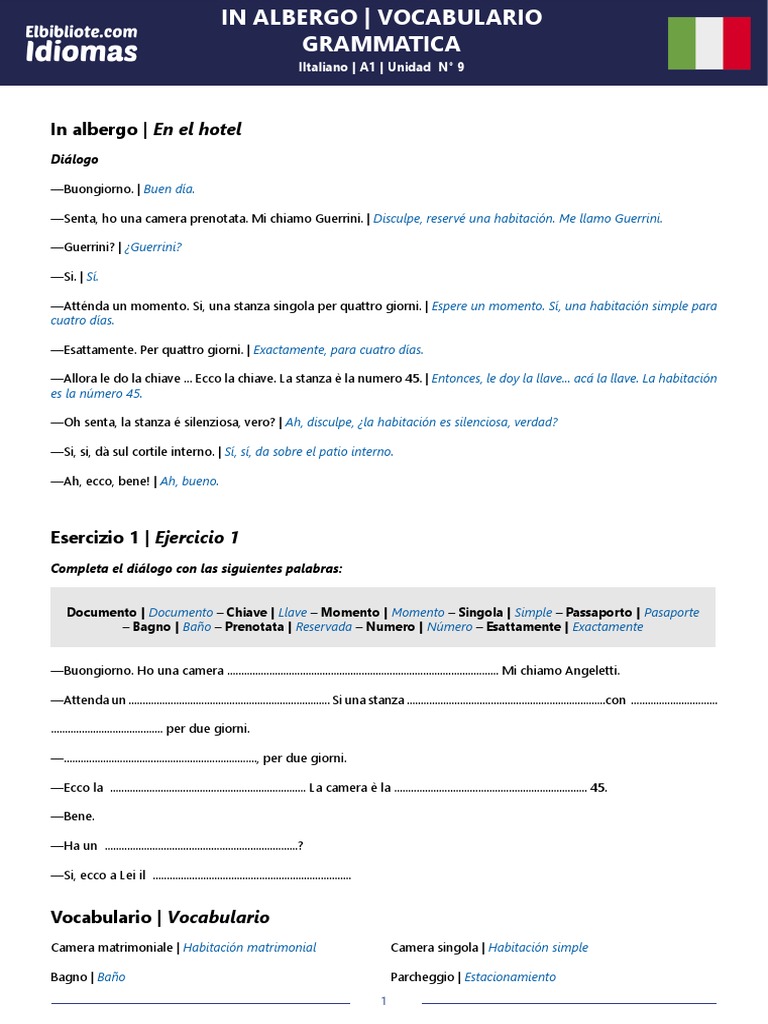IN ALBERGO | VOCABULARIO
