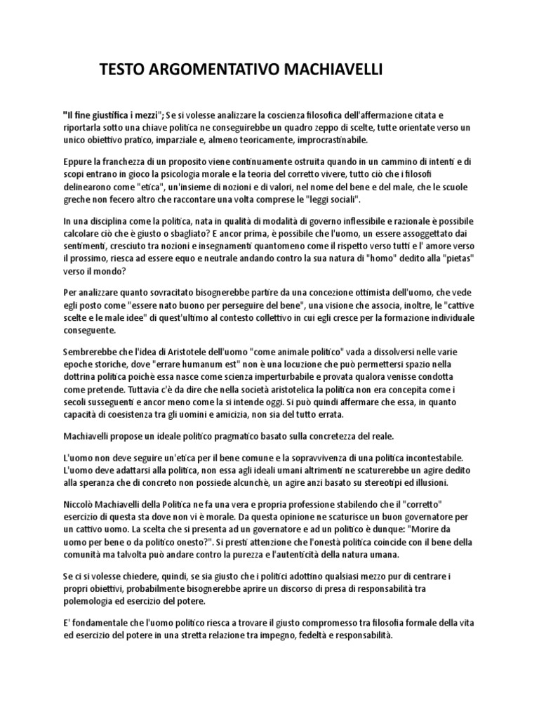 TESTO ARGOMENTATIVO MACHIAVELLI