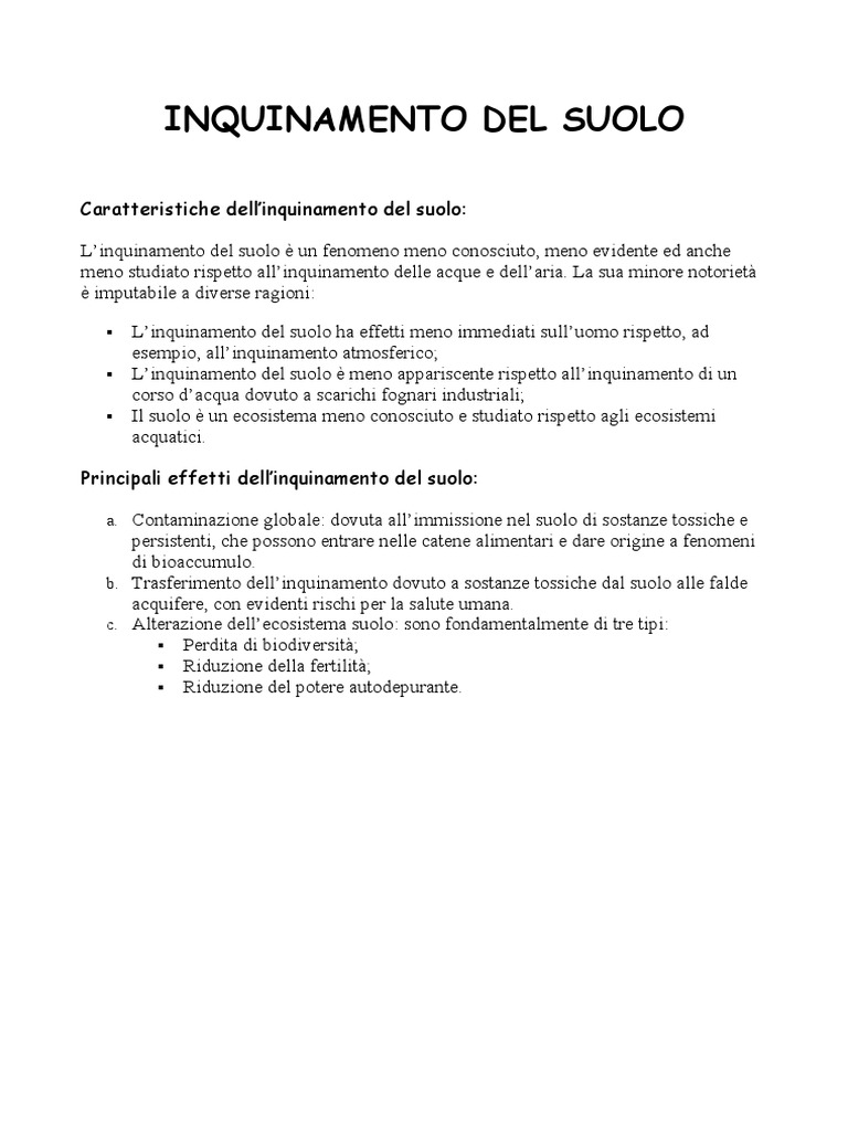 a. Contaminazione globale: dovuta all’immissione nel suolo di sostanze tossiche e