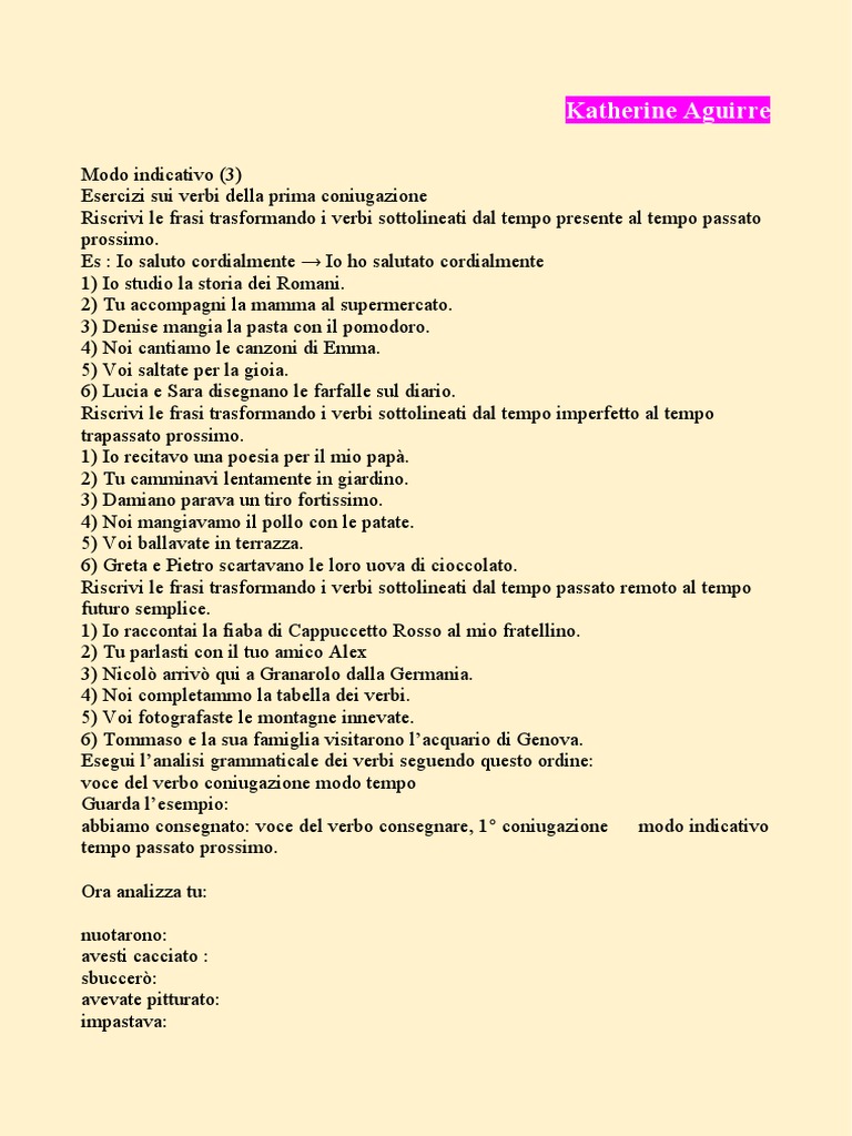 Esercizi sui verbi della prima coniugazione