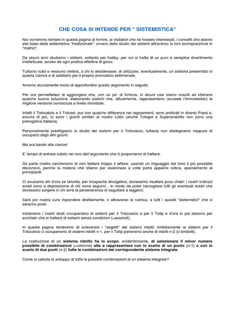 Inizieremo i nostri studi occupandoci di sistemi per il Totocalcio e per il Totip e d’ora in poi daremo per