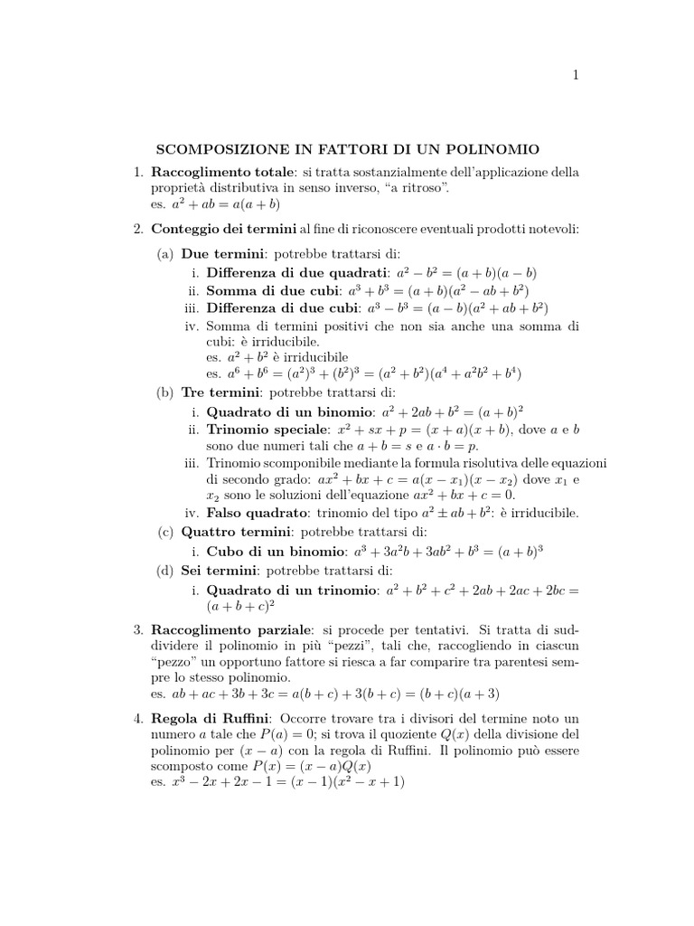 SCOMPOSIZIONE IN FATTORI DI UN POLINOMIO
