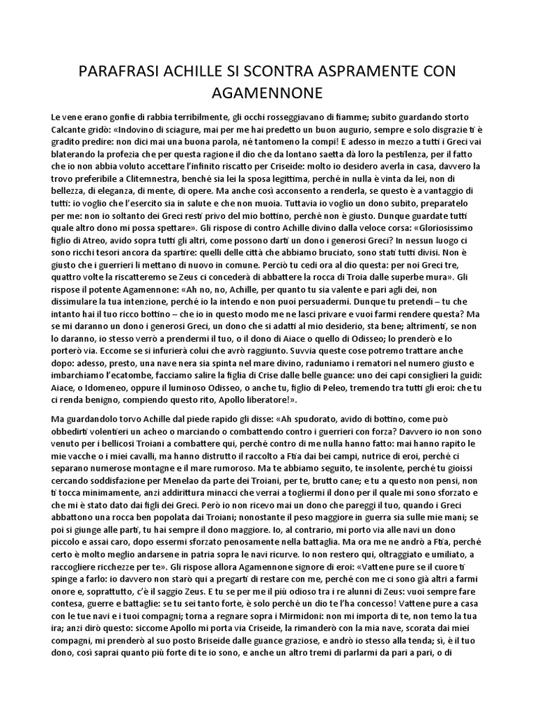PARAFRASI ACHILLE SI SCONTRA ASPRAMENTE CON