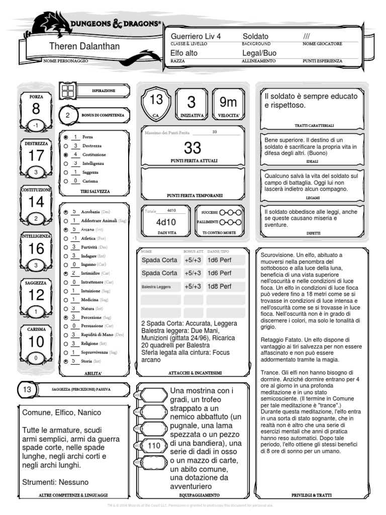ALTRE COMPETENZE & LINGUAGGI EQUIPAGGIAMENTO PRIVILEGI & TRATTI