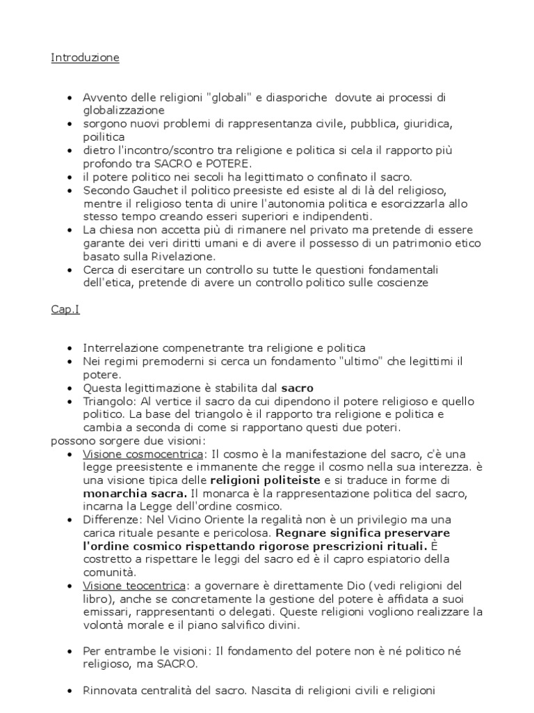• il potere politico nei secoli ha legittimato o confinato il sacro.