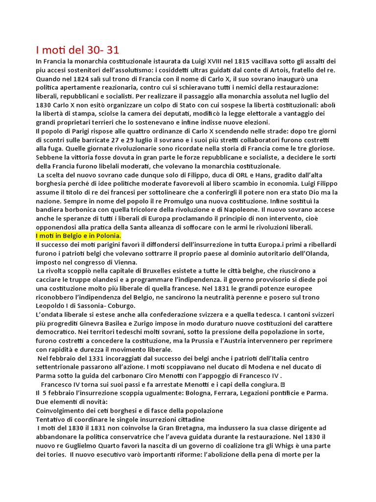 A differenza dei moti del 1820 1821 quelli scoppiati i 10 anni dopo cambiarono profondamente i