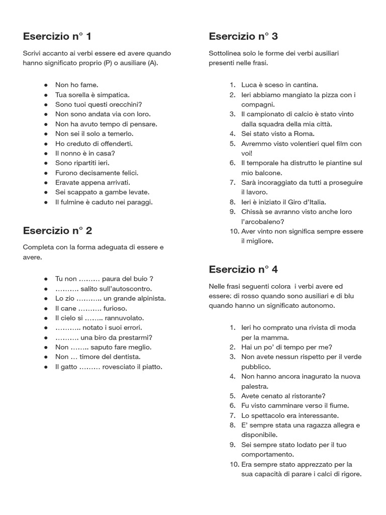 Scrivi accanto ai verbi essere ed avere quando Sottolinea solo le forme dei verbi ausiliari