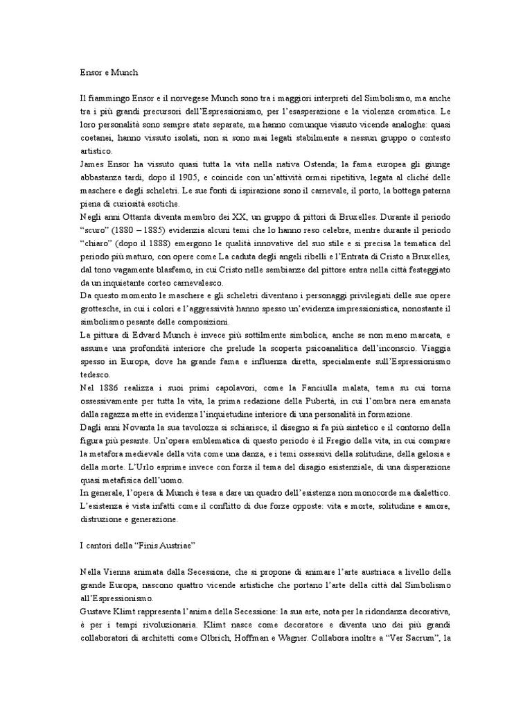Il fiammingo Ensor e il norvegese Munch sono tra i maggiori interpreti del Simbolismo, ma anche