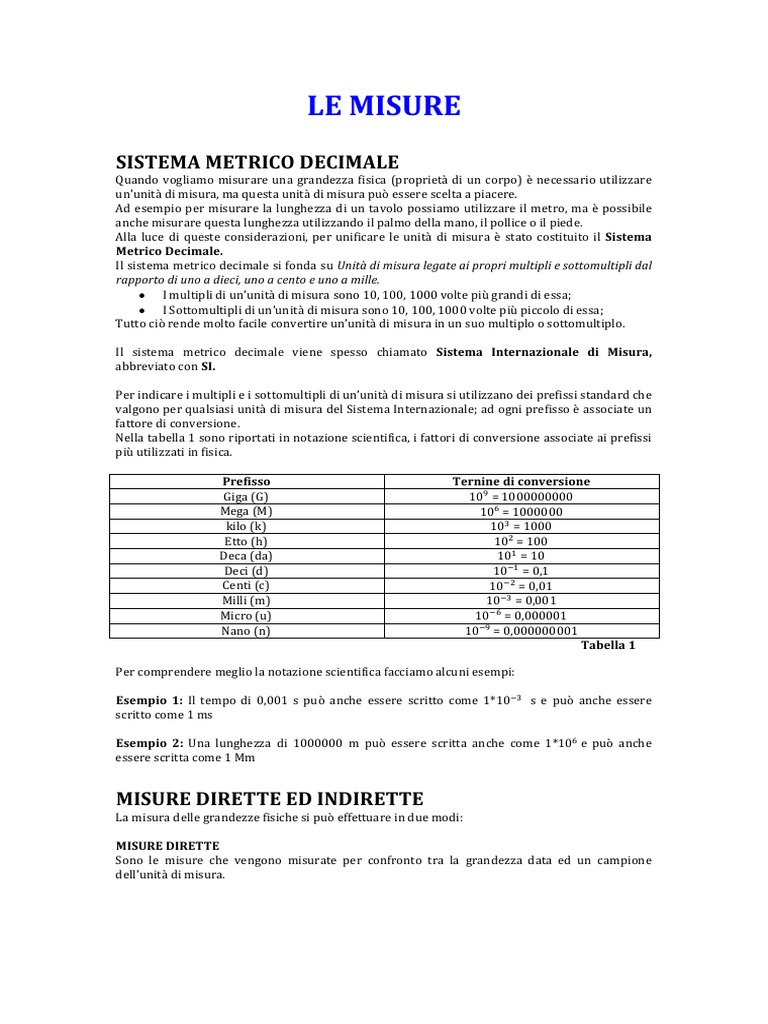Nella tabella 1 sono riportati in notazione scientifica, i fattori di conversione associate ai prefissi