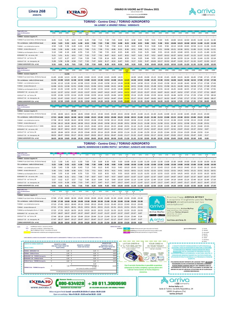TORINO AEROPORTO (liv. arrivi) 12:35 12:50 13:05 13:20 13:35 13:50 14:05 14:20 14:35 14:50 15:05 15:05 15:20 15:35 15:50 16:05 16:20 16:35 16:50 17:05 17:20 17:35 17:50 18:05 18:20