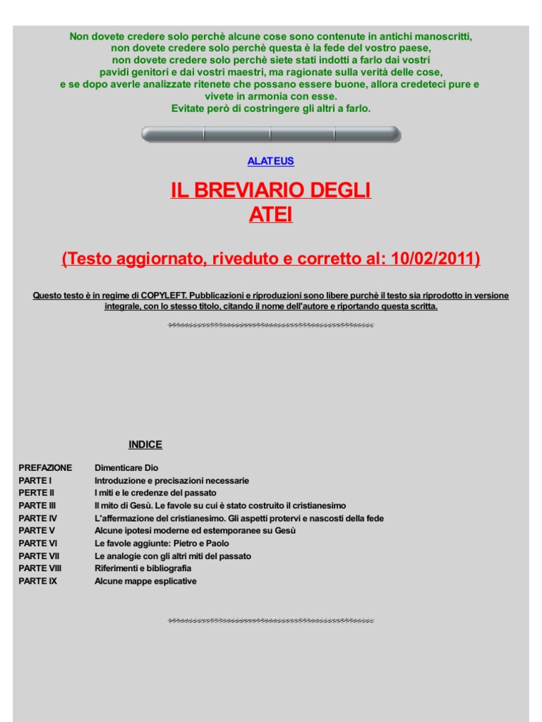 Questo testo è in regime di COPYLEFT. Pubblicazioni e riproduzioni sono libere purchè il testo sia riprodotto in versione