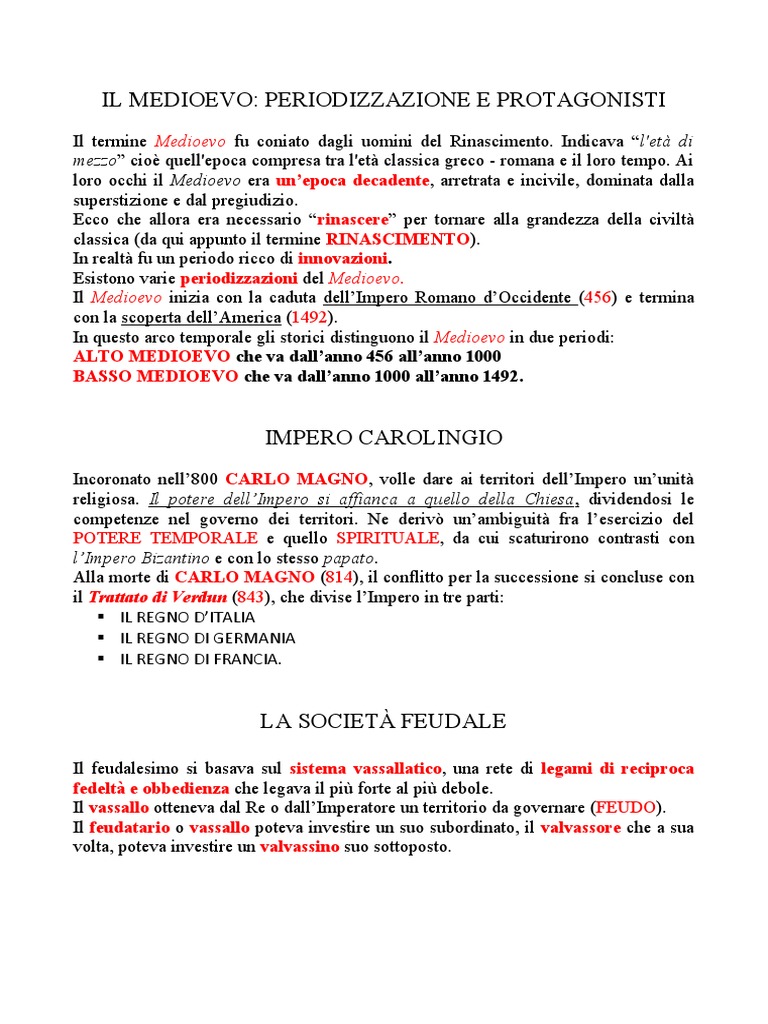 Il Medioevo inizia con la caduta dell’Impero Romano d’Occidente (456) e termina