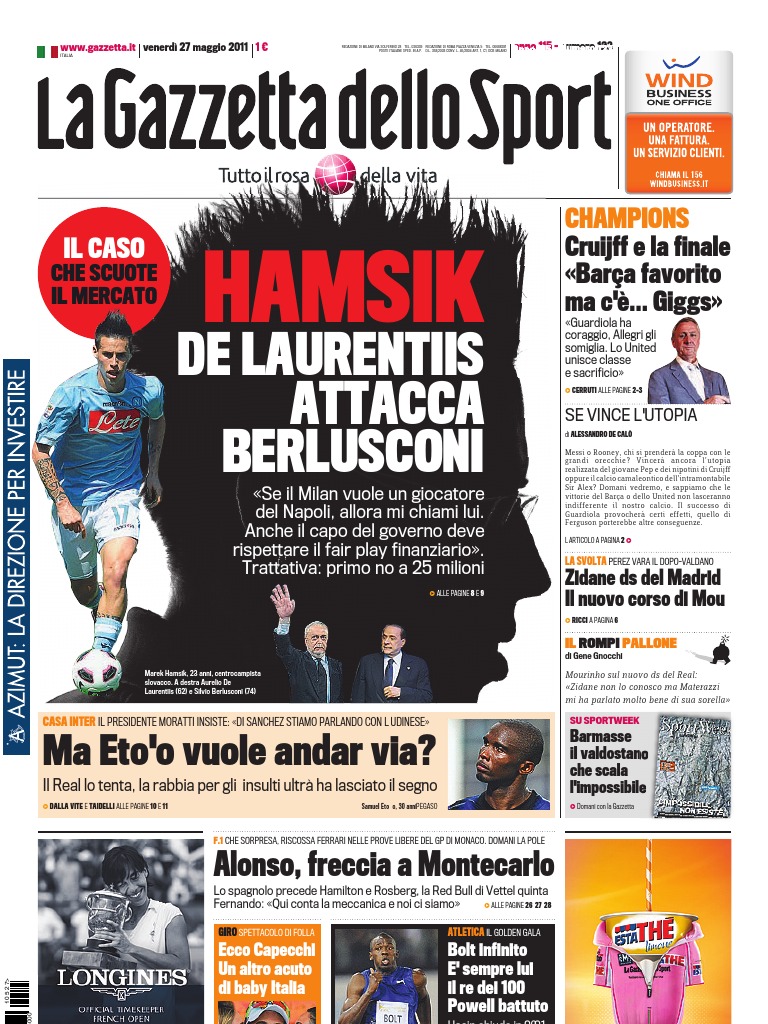 3 DALLA VITE E TAIDELLI ALLE PAGINE 10 E 11 Samuel Eto o, 30 anniPEGASO 3 Domani con la Gazzetta