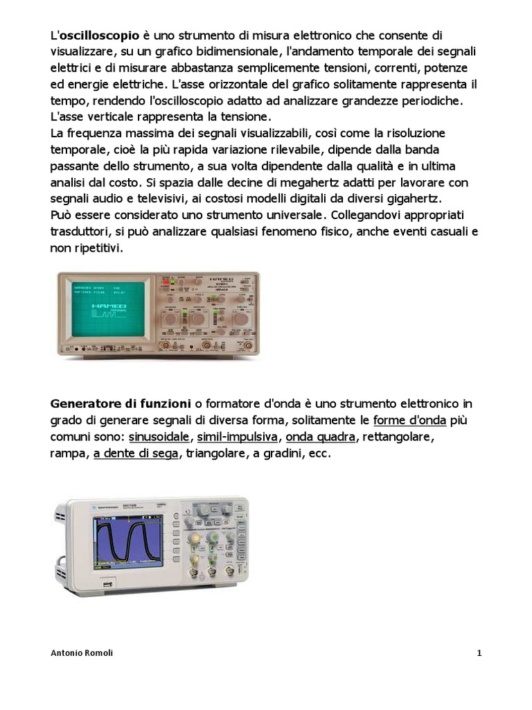 L'oscilloscopio è uno strumento di misura elettronico che consente di