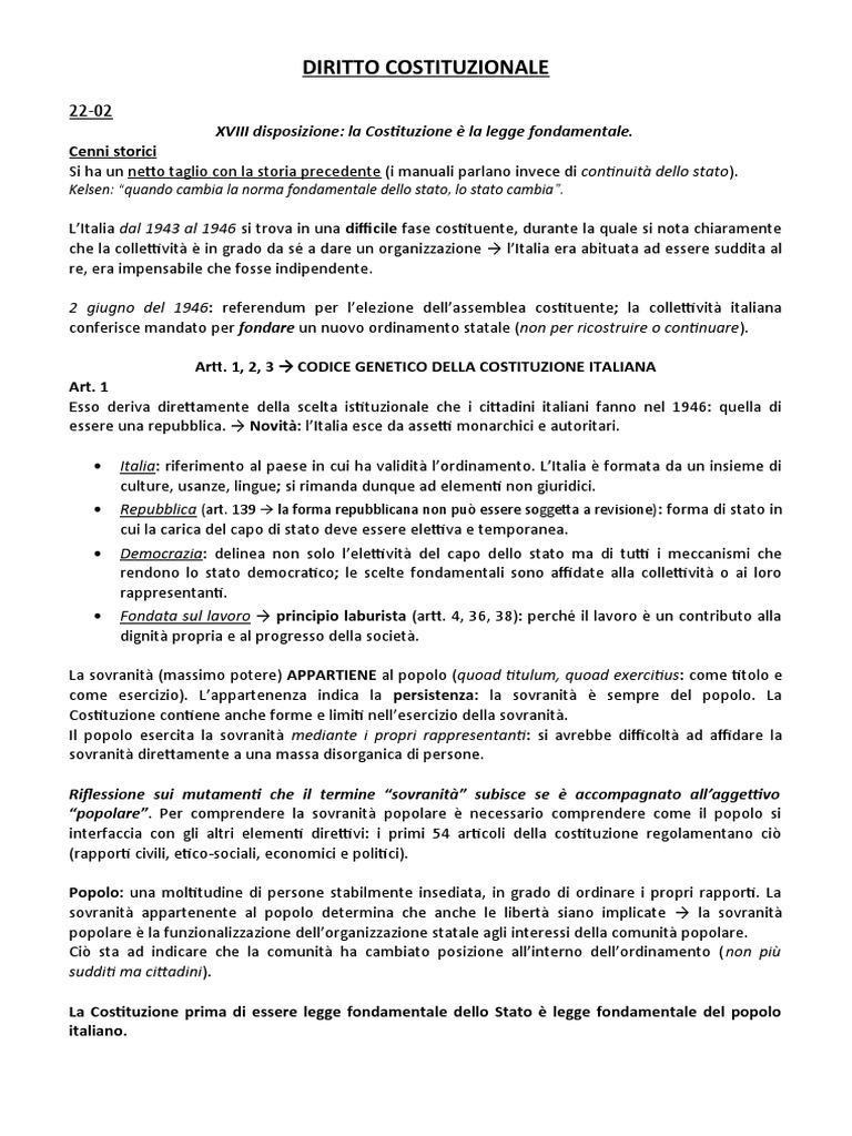 Le premesse e le nozioni generali sono importanti perché si parte da un assunto: la costituzione è una