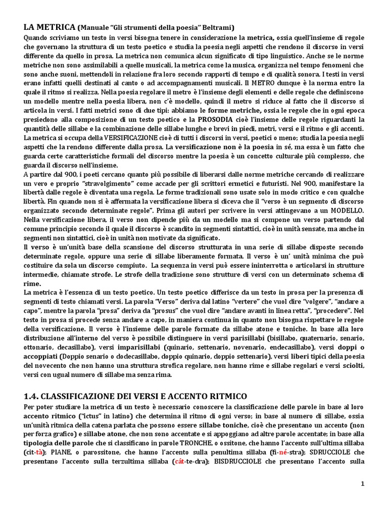 La metrica è l’essenza di un testo poetico. Un testo poetico differisce da un testo in prosa per la presenza di