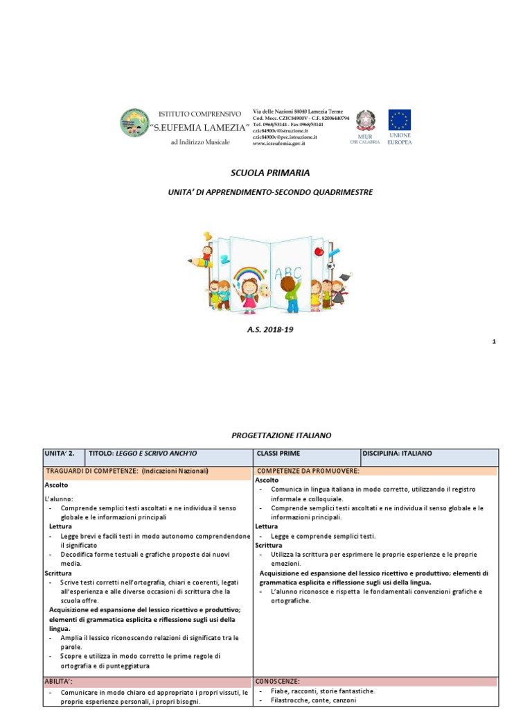 UNITA’ 2. TITOLO: LEGGO E SCRIVO ANCH’IO CLASSI PRIME DISCIPLINA: ITALIANO