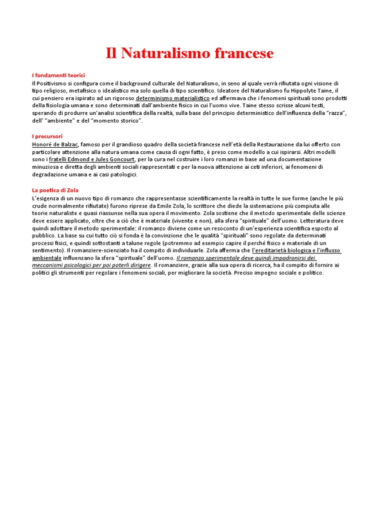 tipo religioso, metafisico o idealistico ma solo quella di tipo scientifico. Ideatore del Naturalismo fu Hippolyte Taine, il