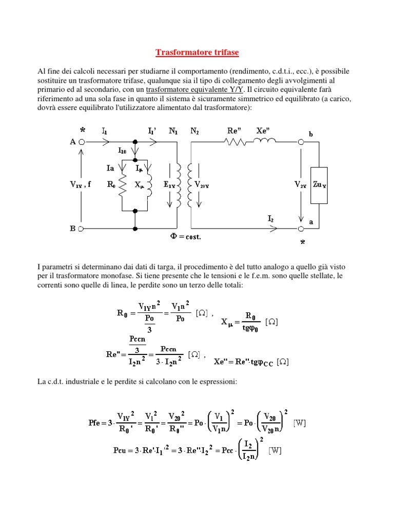 primario ed al secondario, con un trasformatore equivalente Y/Y. Il circuito equivalente farà