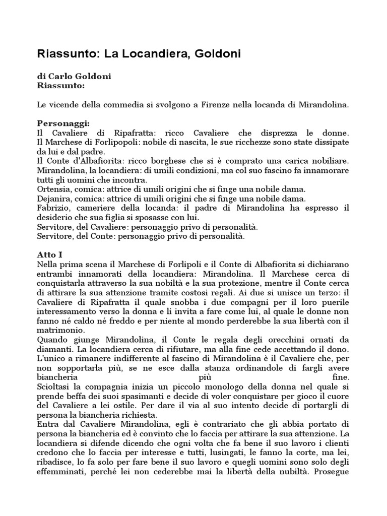 Riassunto LA LOCANDIERA