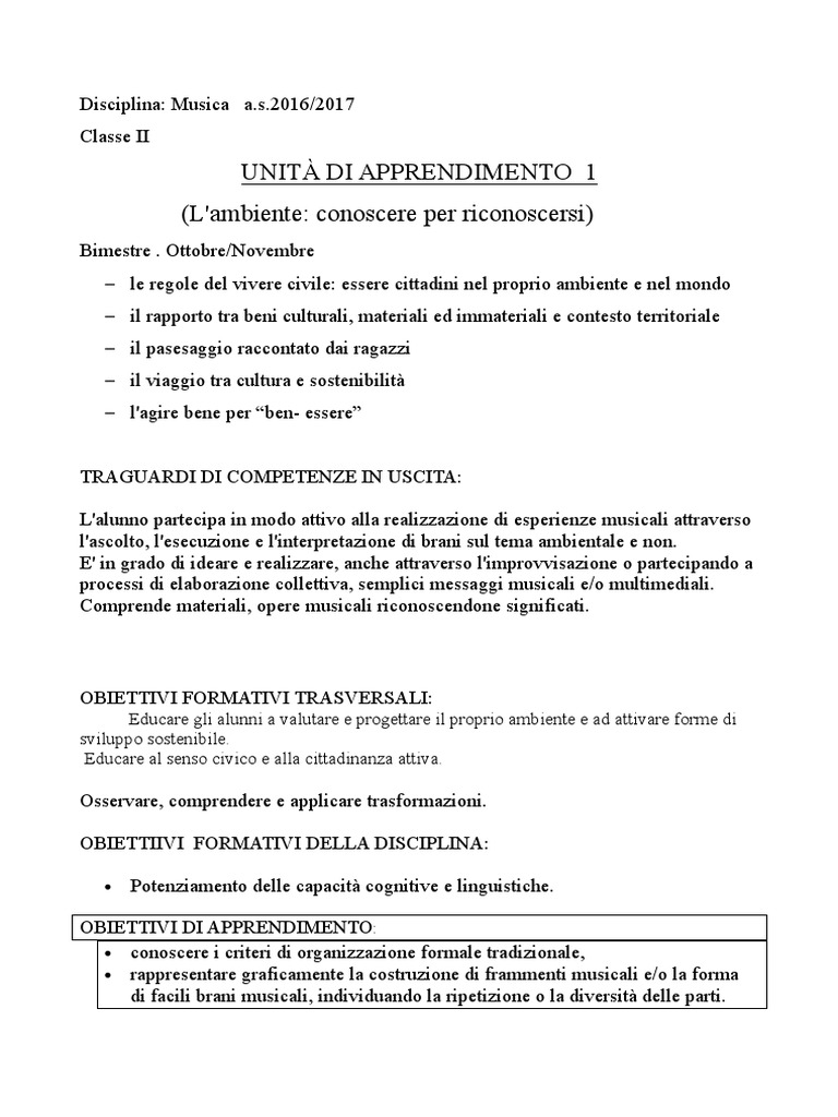 l'ascolto, l'esecuzione e l'interpretazione di brani sul tema ambientale e non.