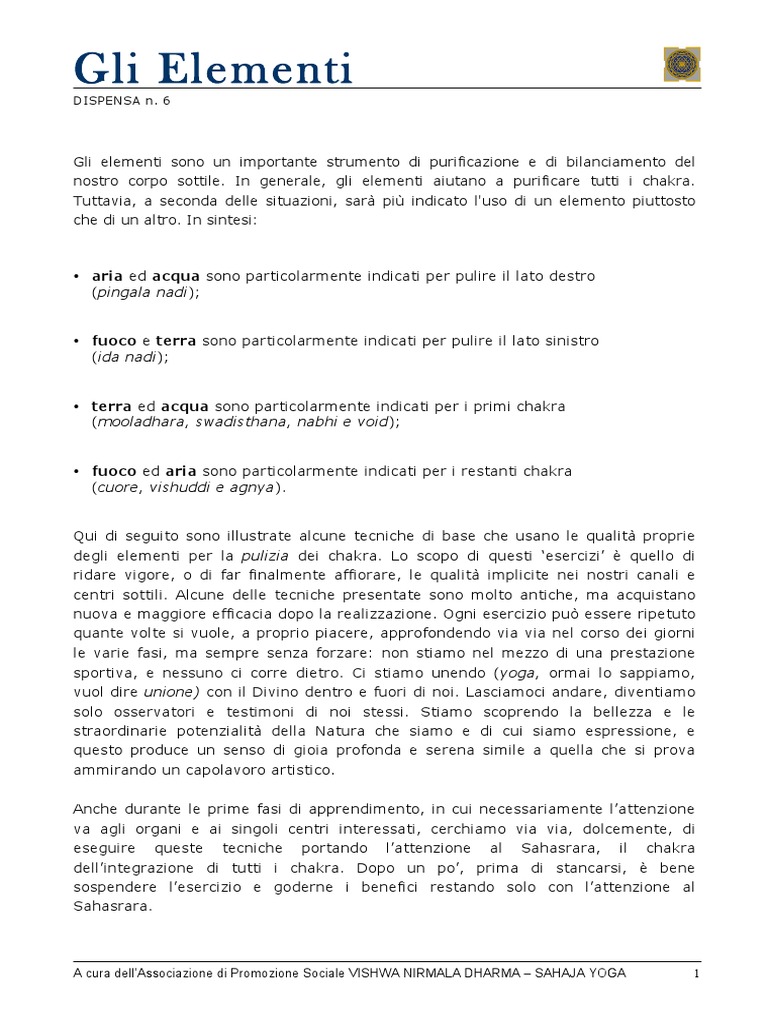 A cura dell’Associazione di Promozione Sociale VISHWA NIRMALA DHARMA – SAHAJA YOGA 1