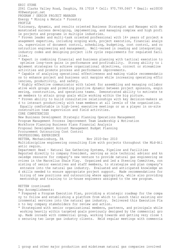 ironmental services into the natural gas industry. Delivered this Execution Pla