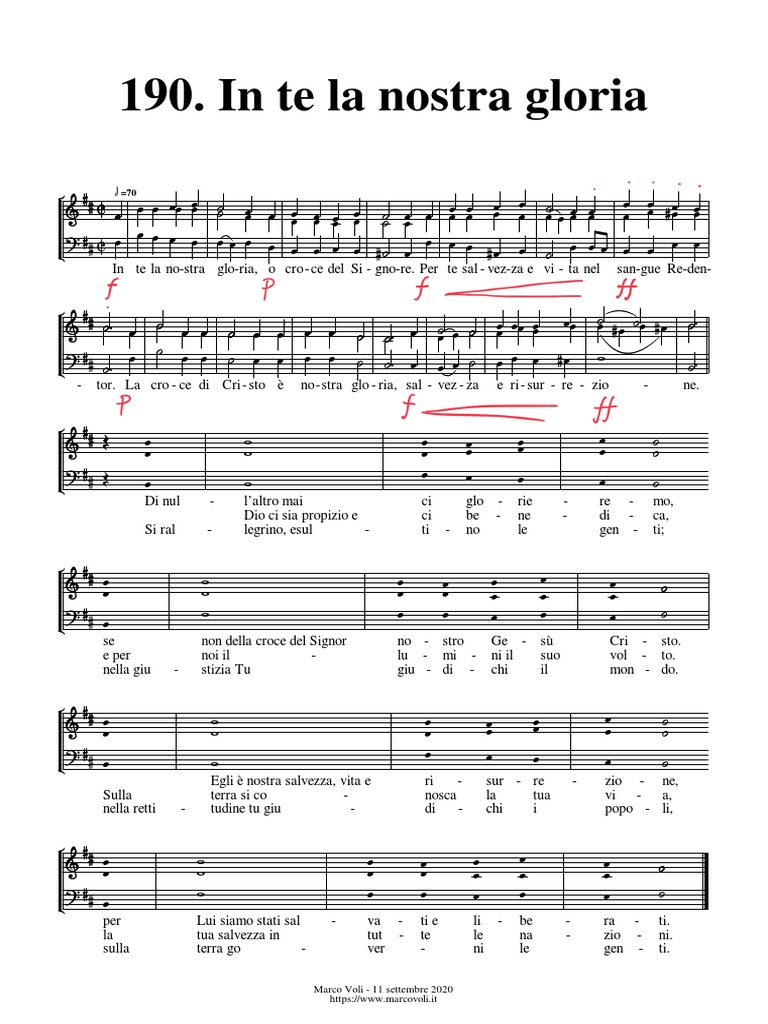 In te la no-stra glo-ria, o cro - ce del Si - gno-re. Per te sal - vez-za e vi - ta nel san-gue Re-den-