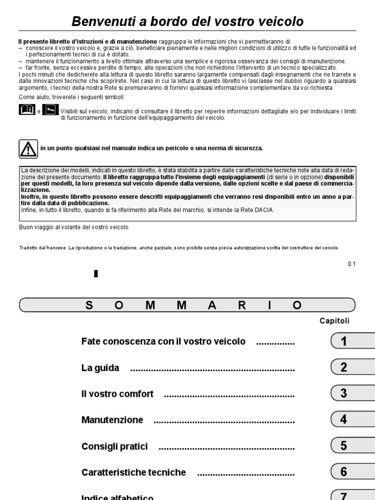 Infine, in tutto il libretto, quando si fa riferimento alla Rete del marchio, si intende la Rete DACIA.
