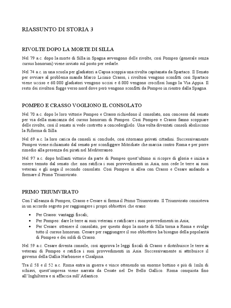 veterani e gli nega il secondo consolato. Così Pompeo si allea con Crasso e Cesare andando a