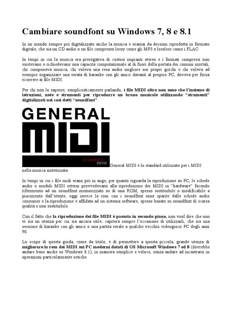 migliorare la resa dei MIDI sui PC moderni dotati di OS Microsoft Windows 7 ed 8 (dovrebbe
