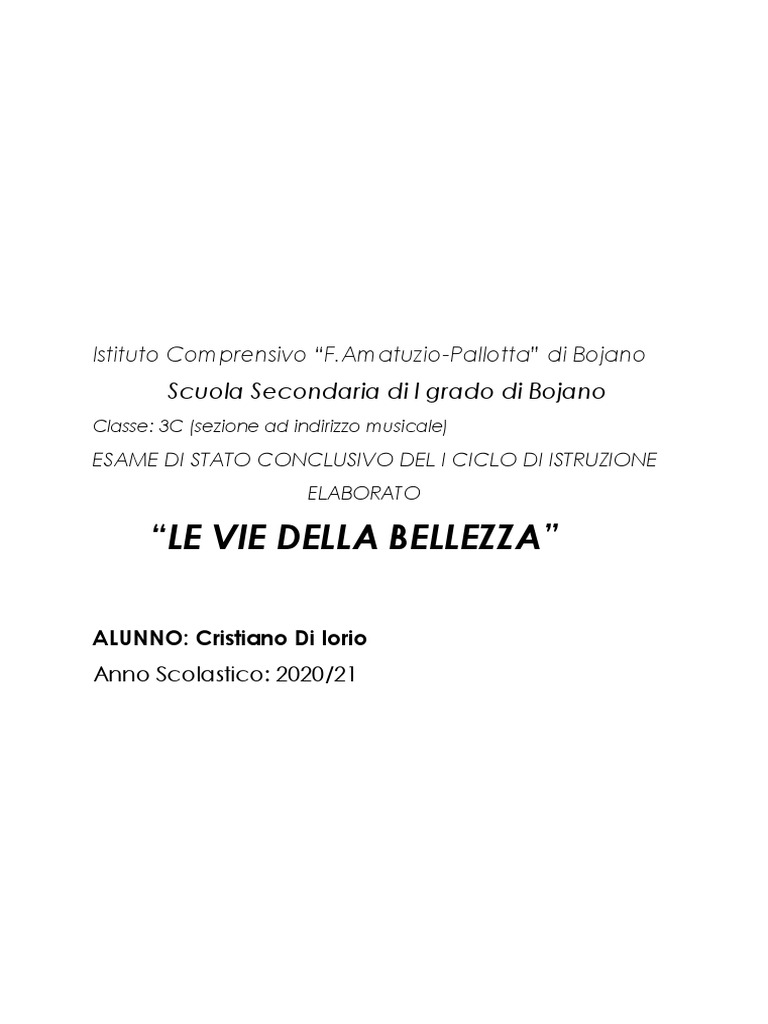 Il mio argomento d’esame verte su “Le vie della bellezza”. Ho scelto