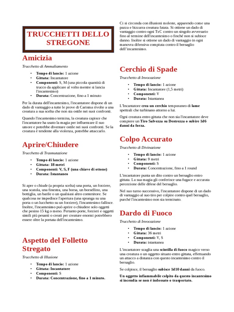 Trucchetto di Trasmutazione • Tempo di lancio: 1 azione