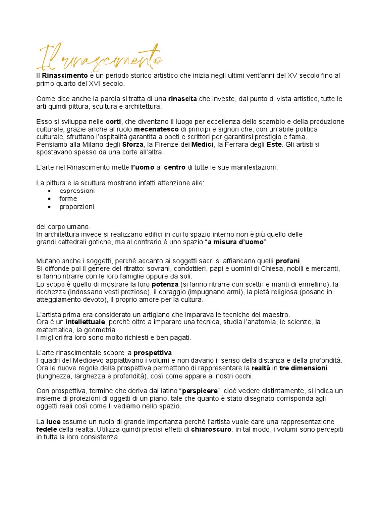 Il Rinascimento è un periodo storico artistico che inizia negli