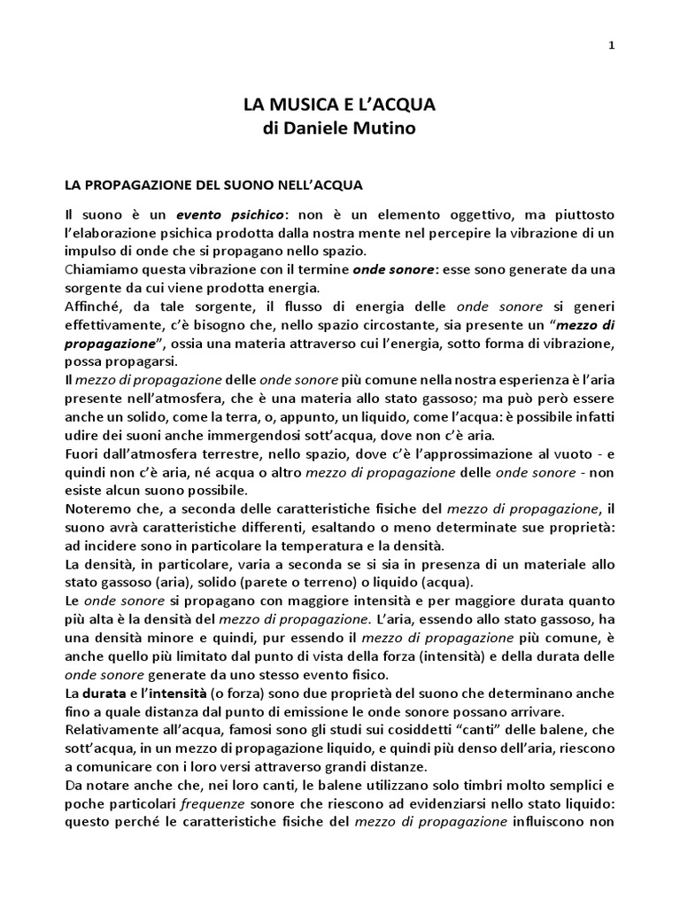 di acqua: abbiamo detto che, quando il mezzo di propagazione del suono è liquido,