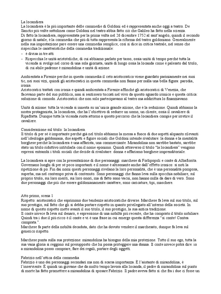 La locandiera è la più importante delle commedie di Goldoni ed è rappresentata anche oggi a teatro. De