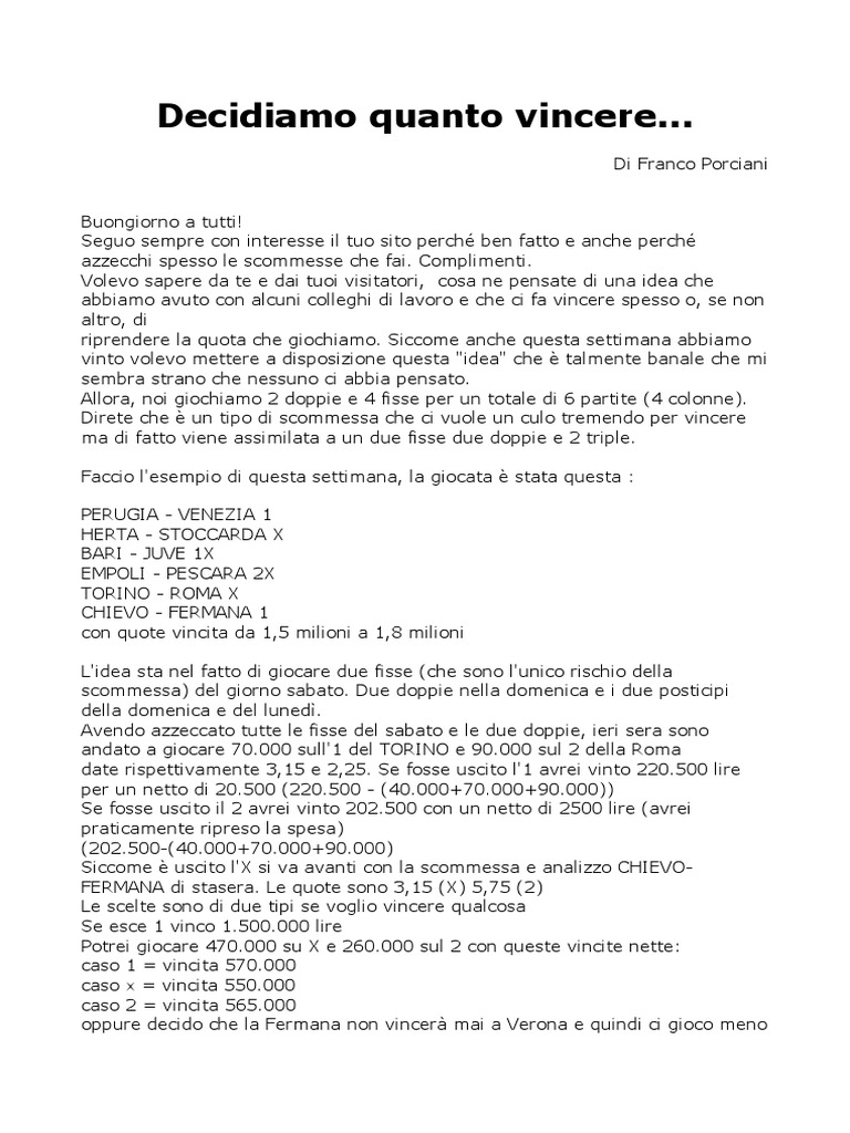 oppure decido che la Fermana non vincerà mai a Verona e quindi ci gioco meno