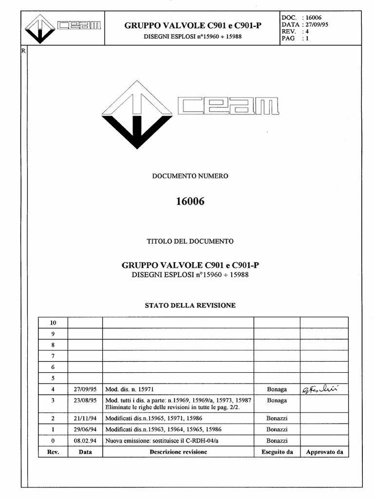 GRUPPO VALVOLE C901 e C901-P DATA : 27/09/95